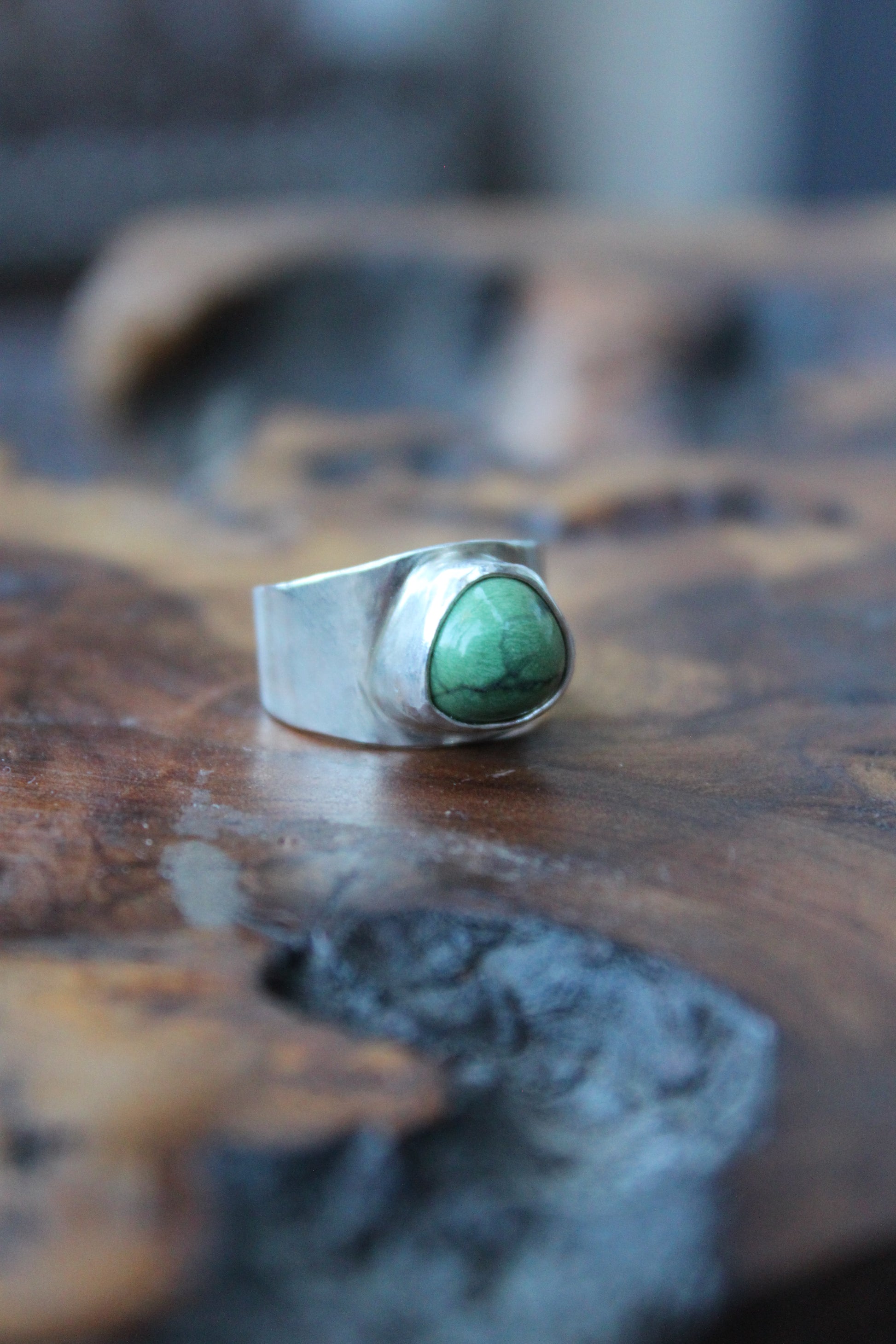 This ring has been handcrafted with an ethically sourced turquoise stone and 100% .925 sterling silver, making it truly one of a kind.